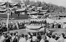 Pak Chong-ae, leader of the Korean Democratic Women's Union (조선민주녀성동맹, = North Korea Democratic Women's League), speaks at a rally for the local elections in North Korea held 3rd Nov. 1946.