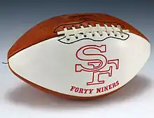 A football signed by the 1975 San Francisco 49ers team, including Steve Spurrier.