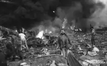Locals fired guns in the air, following the blast, trying to clear the roads to allow ambulances to pass.[7] A banner was strung across the blast site by locals, reading "Made in USA."[8]