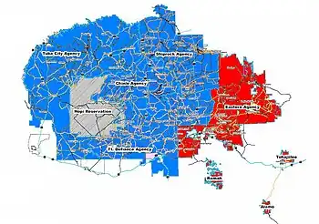 Presidential election results map. Red denotes Agencies won by Lovejoy/Phelps, Blue denotes those won by Shirley/Shelly.