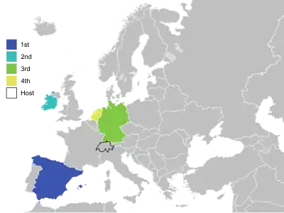 The host nations of the four one-venue mini-tournament groups are indicated in italics.