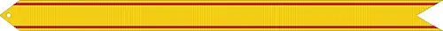 A multicolored streamer with (from outer to inner) red, white, green, white again, black (the colors of the Iraqi flag) horizontal stripes with a yellow horizontal stripe in the center Iraq Campaign Streamer with three Bronze Stars