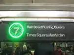- ↑ Donohue, Pete (April 1, 2008). "On No. 7 trains, red diamond means express, a green circle for local". New York Daily News. Archived from the original on March 22, 2015. Retrieved May 5, 2015.