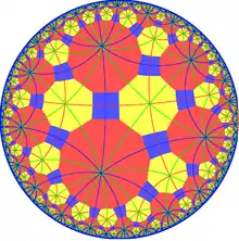 In geometry, the truncated tetraoctagonal tiling is a semiregular tiling of the hyperbolic plane. There are one square, one octagon, and one hexakaidecagon on each vertex. It has Schläfli symbol of tr{8,4}.