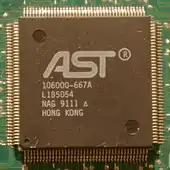 AST Research, Inc., later doing business as AST Computer, was a personal computer manufacturer. It was founded in 1980 in Irvine, California, by Albert Wong, Safi Qureshey, and Thomas Yuen, as an initialism of their first names. In the 1980s, AST designed add-on expansion cards, and evolved toward the 1990s into a major personal computer manufacturer. AST was acquired by Samsung Electronics in 1997 but was de facto closed in 1999 due to a series of losses.