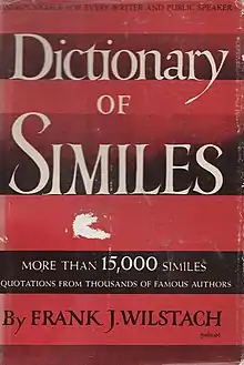 A Dictionary of Similes is a dictionary of similes written by the American writer and newspaperman Frank J. Wilstach. In 1916, Little, Brown and Company in Boston published Wilstach's A Dictionary of Similes, a compilation he had been working on for more than 20 years. It included more than 15,000 examples from more than 800 authors, indexing them under more than 3,000 topics and, where possible, identifying their first use.