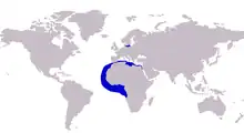 | Approximate distribution of the African threadfish. Note there is only one record for the Adriatic Sea. | |