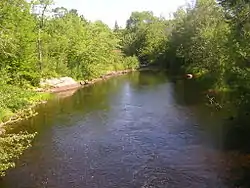 Magnetawan River looking downstream from the Highway 11 bridge in Burk's Falls