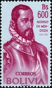 Alonso de Mendoza (c.1471/76 – 26 June 1549)[1] was a Spanish captain, conquistador, and the founder of the city of Nuestra Señora de La Paz. He was appointed by Pedro de la Gasca, the "Peacemaker," to found the city to commemorate the peace in the Peruvian colonies after the defeat of the Pizarro brothers.