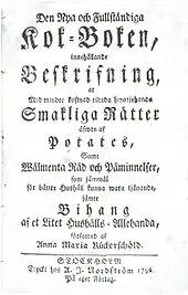 The title page of Den Nya och Fullständiga Kok-Boken from 1796, Rückerschöld's only work devoted almost entirely to cooking.