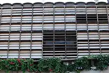 Raymond sought to mitigate the effects of the Pondicherry climate and oriented the Golconde dormitory (as it became known), so that its main facades faced north and south to make use of the prevailing breeze. A combination of moveable louvres on the exterior skin and woven teak sliding doors permitted ventilation without compromising on privacy. The building is still in use as an ashram today.[26] It was the first modernist building in India.[27]