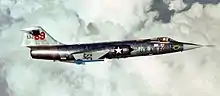 A F-104A in flight in 1960: Wing Commander Shamim commanded the wing against the Indian IAF, leading bombing missions in 1965.:contents[14]