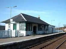 Arisaig railway station serves the village of Arisaig on the west coast of the Highland region of Scotland. This station is on the West Highland Line, measured 32 miles 2 chains (51.5 km) from the former Banavie Junction, near Fort William, between Beasdale and Morar on the way to Mallaig.[5] The westernmost station on the Network Rail network,[6] it is the only one of the four cardinal points of the national network that is not a terminus. ScotRail, who manage the station, operate all services.