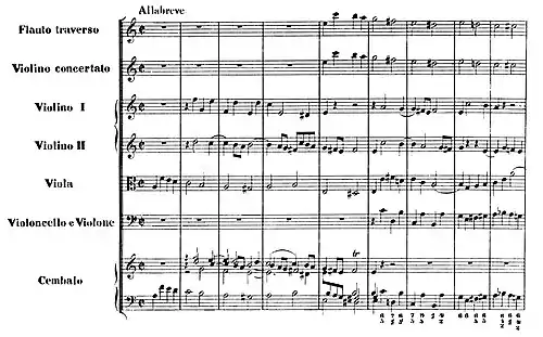 Scoring: harpsichord I/II solo, violin I/II, viola, continuo (cello, violone):[46]