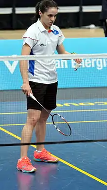 Spanish Beatriz Corrales at the 2015 Finnish Open Badminton Championships in Vantaa, Finland.