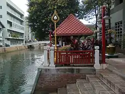 Bang Lamphu became a community prior to the Rattanakosin period. It was the residence of royalty, courtiers, vassals[4] and citizens of many ethnic groups, including Thai, Chinese, Mon and Muslims who settled in the vicinity.[5][6] Once the Khlong Rop Krung canal was excavated, a pier was established at Bang Lamphu[7] by which goods such as vegetables and fruits could be transported from the Thonburi side. Bang Lamphu also became a major market for overland trade via the Khaosan Road[8] and a number of other roads.