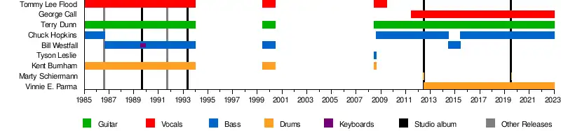 • Tommy Lee Flood – vocals (1985–1993, 1999–2000, 2008–2009)