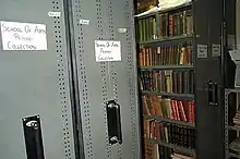 The Old Bathurst School of Arts Library Collection was probably begun soon after the establishment of the Bathurst School of Arts in 1855. In the financial year 1913–1914, the School of Arts Library Collection was measured at nearly 20,000 volumes.[5] In the 1940s at least the collection was still housed on the first floor of the 1862 School of Arts building on the corner of William and Howick Streets.[6] Bathurst City Council acquired the collection in 1956 when it took over the Old School of Arts building. The estimated 2,000 books now held in this collection were probably separated out from the Bathurst City Library's general holdings soon after acquisition, and stored together away from public access. They had never been available for lending, although they had been viewed by members of the public from time to time under supervision.[7][1]