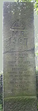 ![]() Commemorative Stone at Carberry marking the site of the conflict | |||||||
