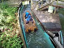 The ride has a bridge over the drop in which visitors can get soaked. |