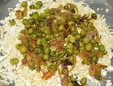• Khichdi[9] - A mix of rice, dal and several vegetables, steamed together to give a distinctive taste of different ingredients combined in one dish. It is often topped up with ghee.