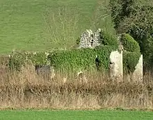 Bix Brand's original parish church of Saint James is a small Norman building in Bix Bottom, about 1 mile (1.6 km) north of the village. It has a nave, chancel and several Norman lancet windows.[2] Later additions include the Perpendicular Gothic east window and another Perpendicular window in the south wall.[2] In 1874 the architect John Gibson completed the village's new Church of England parish church, closer to the centre of the village, also dedicated to Saint James.[2] The new church has a north aisle and transept as well as a nave and chancel.[2] Two of the north aisle windows contain sections of late 15th century Flemish stained glass.[2] The old church was abandoned in 1875[2] and became ruined and overgrown.[3][4]