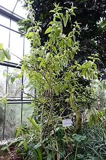 Bowkeria cymosa, the Transvaal shellflower bush. is a species of flowering plants in the family Stilbaceae. It is a leafy, bushy shrub, up to 8 feet in height, endemic to South Africa.