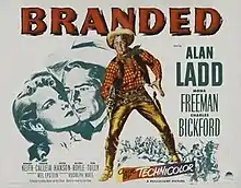 Branded is a 1950 American Technicolor Western film starring Alan Ladd, Mona Freeman, Charles Bickford, and Robert Keith. It was adapted from the novel Montana Rides by Max Brand under pen name Evan Evans.[2] A gunfighter on the run from the law is talked into posing as the long-lost son of a wealthy rancher.