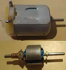 The DC motor's torque is proportional to the product of the armature current and the machine's total flux strength:[10][11][12]