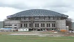 The Buyant Ukhaa Sport Palace (Mongolian: Буянт Ухаа Спорт Ордон, romanized: Buyant Ukhaa Sport Ordon) is a 274,000 square meter multi-purpose indoor arena in the Mongolian capital of Ulaanbaatar, adjacent to the Chinggis Khaan International Airport. The 5,045-seat arena was built using a grant from the People's Republic of China.[1] The total cost of the arena was 160mil ¥ (20,526,636.18USD) in 2009. The Shanghai Construction Group completed construction in June 2011.[2] The arena can host events in basketball, volleyball, badminton, wrestling, and judo, among others. A dedication ceremony was held in December 2010 with Chinese and Mongolian officials.[3]