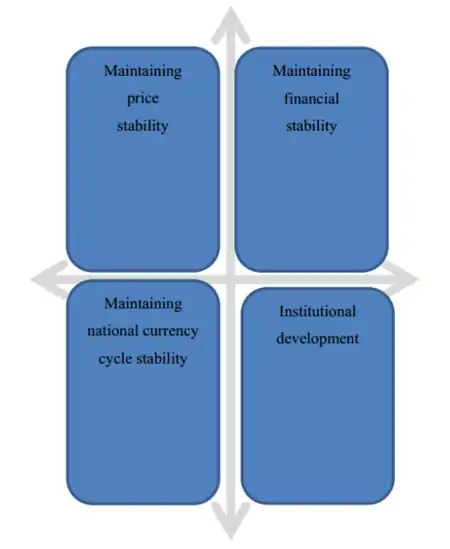 In 2006 the Central Bank moved to a fully-fledged inflation targeting strategy. And since CBA's main and primary objective is to ensure price stability and considering the expectations that inflationary risks will persist in the external world, the annual inflation target band for 2008-2010 has been set at 4% (+1.5%). [4]