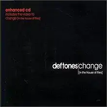 "Change (In the House of Flies)", often referred to as "Change", is a song by American alternative metal band Deftones, released as the first single from their third album, White Pony, in May 2000.[1] It remains their most commercially successful single to date, peaking at No. 3 in Billboard's Alternative Songs chart, No. 9 in the Mainstream Rock Tracks chart[2] and No. 53 in the UK Singles Chart.[3] The song was featured on the MuchMusic compilation album Big Shiny Tunes 5.