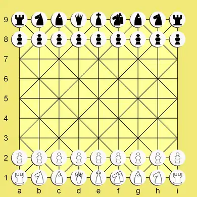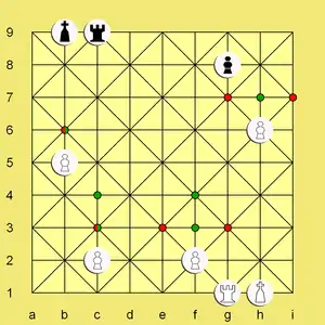 - ↑ This could be described as the "inverse" of the move of a horse in xiangqi.