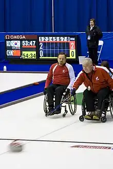 ![]() Chris Sobkowicz and Jim Armstrong at the 2009 World Wheelchair Curling Championship | |