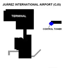 The airport's proximity to the U.S. border makes it an attractive choice for cross-border travelers heading to Mexican cities. However, due to its close proximity to El Paso and the high transportation taxes for international flights in Mexico, the airport only serves domestic destinations.[7] Passengers traveling to destinations in the United States typically use the El Paso International Airport.