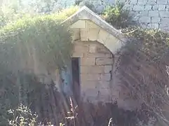 The Corradino Lines were therefore built by the Royal Engineers between 1871 and 1880, at a total cost of £17634. Part of the megalithic temple of Kordin II was destroyed to make way for the new line of fortification in 1871.[5] The defensive line consisted of a V-shaped polygonal-style trace surrounded by a ditch, stretching all the way from the Cottonera Lines to the Ras Ħanżir polverista.[6] The lines were also meant to protect the polverista, which was modified by the addition of an enclosure pierced by musketry loopholes.[7] The lines were armed with two RML 64-pound guns.[8]