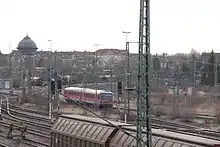 Crailsheim station is a railway junction at the intersection of the Upper Jagst Railway, the Nuremberg–Crailsheim railway, the Hohenlohe Railway and the Tauber Valley Railway. Track 1, the western “home” platform (next to the station building) is mostly used for train services to Schwäbisch Hall-Hessental and Lauda. Some trains also run towards Ansbach. Track 2, the eastern “home” platform is served by intercity trains to Aalen and some trains in all directions. Track 3 is served by trains to Schwäbisch Hall-Hessental, Ansbach and Lauda. Inter-city trains running to Ansbach and Aalen stop on track 4.