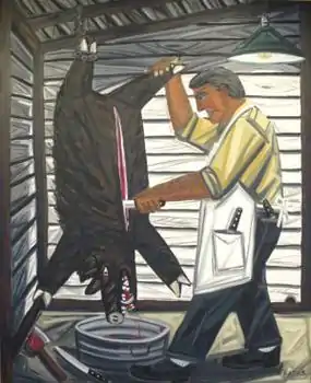 Butchering the Hog by David Bates, 1984, Honolulu Museum of Art