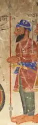 Dharam Singh, one of the inaugural/original Panj Pyare, depicted in an old Sikh fresco from inside an abandoned Sikh samadhi located in Kot Fateh Khan, Attock, Punjab, Pakistan