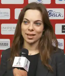 Belenkaya also played on the same SDYUSSHOR SHSH team for the European Club Cup for Women. At the 2015 event, SDYUSSHOR SHSH finished in seventh place out of twelve teams.[64] They finished in seventh place again the following year in 2016, this time out of fourteen teams.[65] Like the national competition, Belenkaya had a better result in her second appearance, scoring 4½/7 and gaining rating points in 2016 compared to a score of 3½/7 in 2015 that lost her rating points.[66][67] Belenkaya's best team result was in 2018 when the competition was divided into a two-group six-team round-robin stage and a three-group four-team two-round knockout stage in which the groups were determined by the round-robin placings. SDYUSSHOR SHSH qualified for the top knockout group and finished in fourth place.[68][69] Although Belenkaya lost rating points in both 2018 and 2019, her victories against higher-rated players Stavroula Tsolakidou and Zhansaya Abdumalik helped her team earn opening-round draws in both instances.[68][70][71]