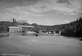 The Dunderland Line was a single track, standard gauge 23.7 km (14.7 mi) railway between Gullsmedvik and Storforshei.[1] It started at Mo i Rana Port at Gullsmedvik and ran up the Dunderland Valley until it reached Rena Mine at Storforshei, following the south shore of the river Ranaelva. After the assimilation with the Nordland Line, the sections to Gullsmedvik and Storfoshei became branch lines of the main line.[2]