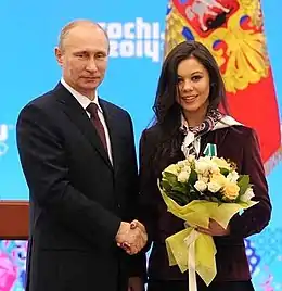 Ilinykh at the awarding ceremony for Russian athletes with President Vladimir Putin