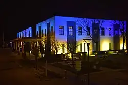 For 70 years, the embassy was located at 9 Tudor Arghezi Street (near the Intercontinental Hotel), in a palace that once belonged to Mauriciu Blank.[4][5] The embassy moved to its present location on September 14, 2011. The compound is located on a 4.5 hectares (11 acres) lot in the Băneasa district of the capital, on a boulevard named after Liviu Librescu.[6] The area was part of a real estate development purchased under controversial circumstances by Gabriel Popoviciu, and where the Băneasa Shopping City and an IKEA store are also located.[7][8] The building was designed and constructed by the American International Corporation, with help from several local construction firms, involving 1,500 Romanian specialists and workers overall.[9] The embassy residential complex consists of nine buildings; the main building, made of concrete, has the appearance of a fortress or military barracks and is surrounded by high concrete walls.[10]