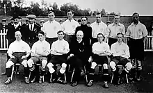 Its first international match was against Germany[lower-alpha 1] on 21 September 1901, a 12–0 win at White Hart Lane, London, with R. E. Foster scoring 6 (one source gives 7). It was to be another five years before an official England amateur team was founded.[1] The next match was away against France on 1 November 1906 and resulted in a 15–0 win for England, with Stanley Harris netting seven goals and Vivian Woodward four.[4] The team played many internationals against the full representative sides of Europe, which were usually a mixture of amateur and professional players.[5] The strength of the English amateur team meant they were still able to beat many of these sides and in fact they were unbeaten in 20 matches from 1906 to 1910.[6] Whilst these England amateur matches are not considered full senior internationals by The Football Association, they are deemed to be by their opponents.[6] As such, the England amateur side delivered the biggest defeats on several European nations; the Netherlands in 1907, Germany and Belgium in 1909, and Sweden & Hungary in 1912 (as Great Britain), beating them 12–2, 9–0, 11–2, 12–2 and 7–0 respectively.[7][8]