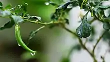 Er jing tiao (simplified Chinese: 二荆条; traditional Chinese: 二荊條; pinyin: Èr jīngtiáo) is a variety of chili that is most common in Sichuan cuisine of China. The chili is typically shaped like the letter J and is between 5 and 6 inches long. This chili is known for its deep color and robust fragrance, and is often used in chili oil for that reason. It is also a major ingredient for many famous chili sauce products, such as the thick broad-bean sauce doubanjiang. It has a spicy and salty flavor which is used in combination with noodles or rice. It has a long history in Chinese cuisine and has gained popularity over time. It's easy to find in traditional authentic Sichuan cuisine, whether in a restaurant or home kitchens. Er jing tiao's taste is different from common types of chili; its taste and smell are slightly spicier. Its colors change from green to red as time passes. They are also eaten as a fresh vegetable seasoned with salt and soy sauce as well as preserved as a salted and (lacto-)fermented chili condiment known as duo jiao (duò jiāo 剁椒, lit. 'chopped chili'). Harvesting time is usually from early May to October.