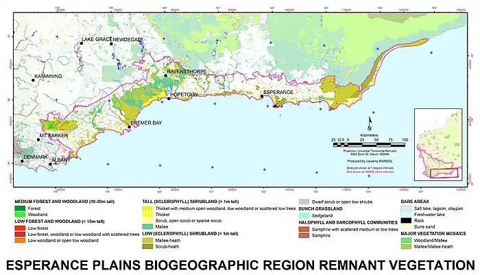 ![]() The interim Australian bioregions, with Esperance Plains in red | |||||||||||||||