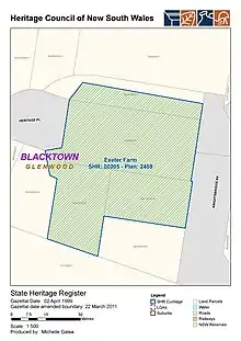 While rural setting of the Exeter Farm cottages has been inevitably altered by the tide of development that has swept the Blacktown area, the extended curtilage ensures that some semblance of its former rural setting and significant views to and from the item are retained.[1]
