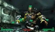 The Vault-Tec Assisted Targeting System (V.A.T.S.) is a new element in the Fallout series that serves as a successor to the aimed shot mechanic from the earlier games, and plays an important part in combat within Fallout 3. The system was introduced by Bethesda's developers, who described it as a hybrid between timeturn-based and real-time combat, so much in that while using V.A.T.S., real-time combat is paused and action is played out from varying camera angles in a computer graphics version of bullet time. Using the system costs action points (AP), the amount of which depends on the weapon being used and thus limiting the actions of the player's combat during a turn. Through the system, the player can switch between multiple targets (if there is more than one around at any time), and also target specific areas of them to inflict damage; a player could either target the head for a quick kill, go for the legs to slow an enemy's movements, or shoot at their weapons to disarm them, and for some enemies, they can put them into a berserker rage by hitting specific parts. The chance of striking a different area, displayed as a percentage ratio, is dependent on the weapon being used, and the distance between the character and the target; a character who is a higher level when using V.A.T.S is also more likely to hit an enemy with the system than a lower level character. The use of V.A.T.S. does confer a negative effect, in that it eliminates most of the first-person shooter elements of the game; aiming is taken over by the computer, and the player is unable to move as a means of avoiding attacks. Furthermore, ranged weapons are capable of hitting limbs, while melee weapons focus on the target in whole when using V.A.T.S.[13]