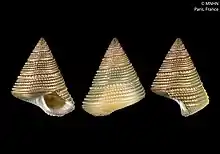 - ↑ Marshall, B. A. (2016). New species of Venustatrochus Powell, 1951 from New Zealand, and new species of Falsimargarita Powell, 1951 and a new genus of the Calliostomatidae from the southwest Pacific, with comments on some other calliostomatid genera (Mollusca: Gastropoda). Molluscan Research. 36: 119-141.