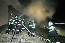 In 2008 Namdaemun fire, Firefighters extinguishing the fire.